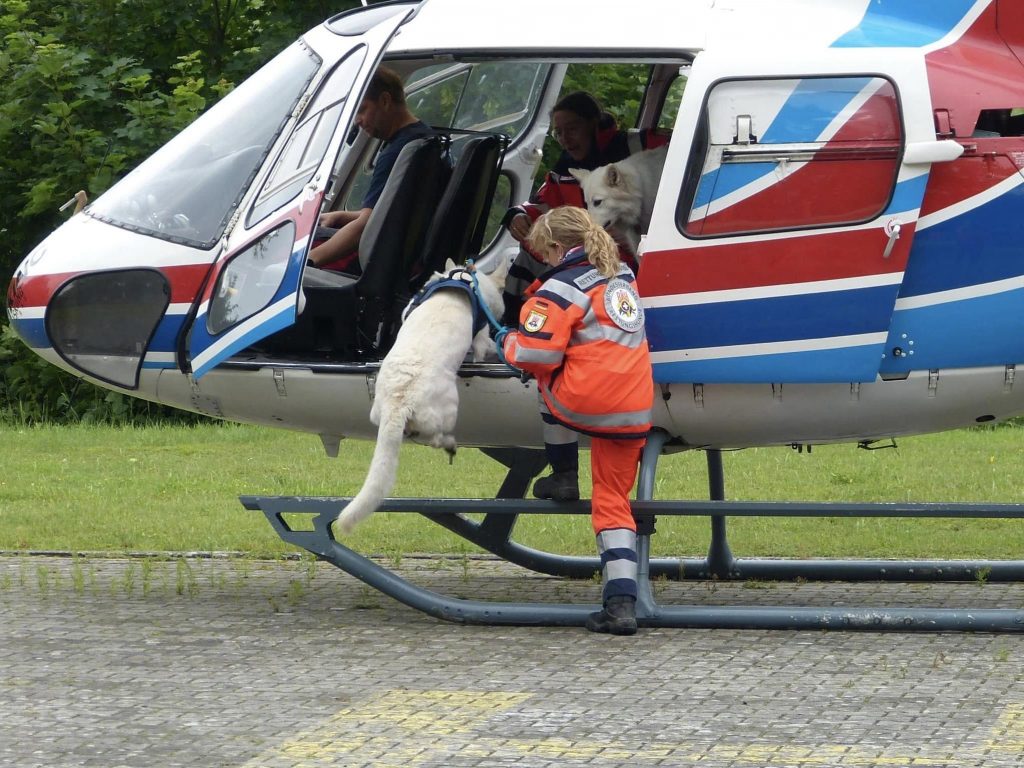 Den heißen Temperaturen entsprechend hatten wir dieses Mal ein kühlendes Training: Bei einer Suche vom Uferrand des Lechs ausgehend wurden „Vermisste“ an allen möglichen Orten und in verschiedensten Positionen gesucht und gefunden – ob im Wasser, auf Bäumen, Booten oder unter Stegen…eine willkommene Abwechslung und wohltuende Erfrischung für Herr und Gscherr!
